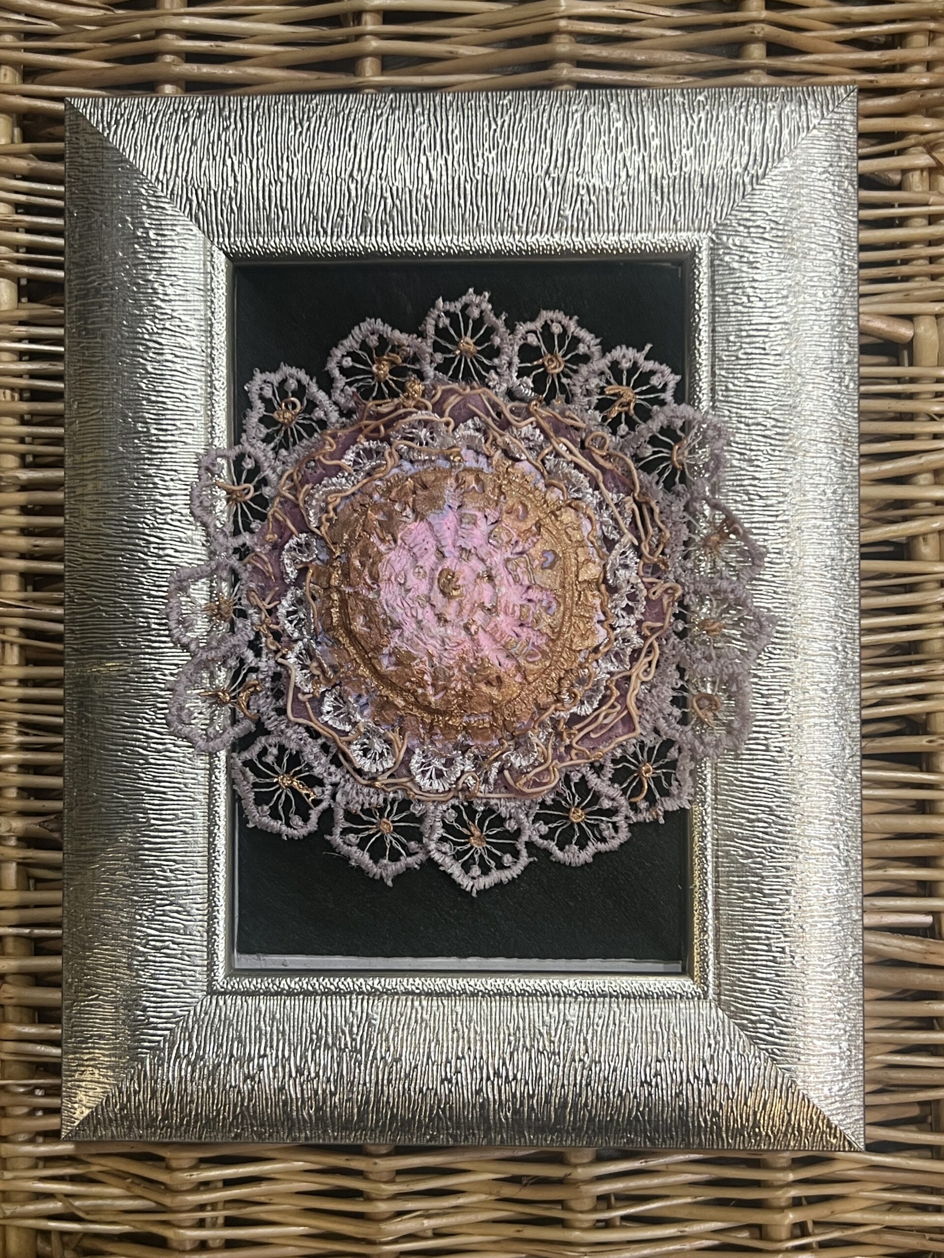 Rankų darbo vienetinis paveikslėlis – atvirukas rėmeliuose. 20cm x 15cm.